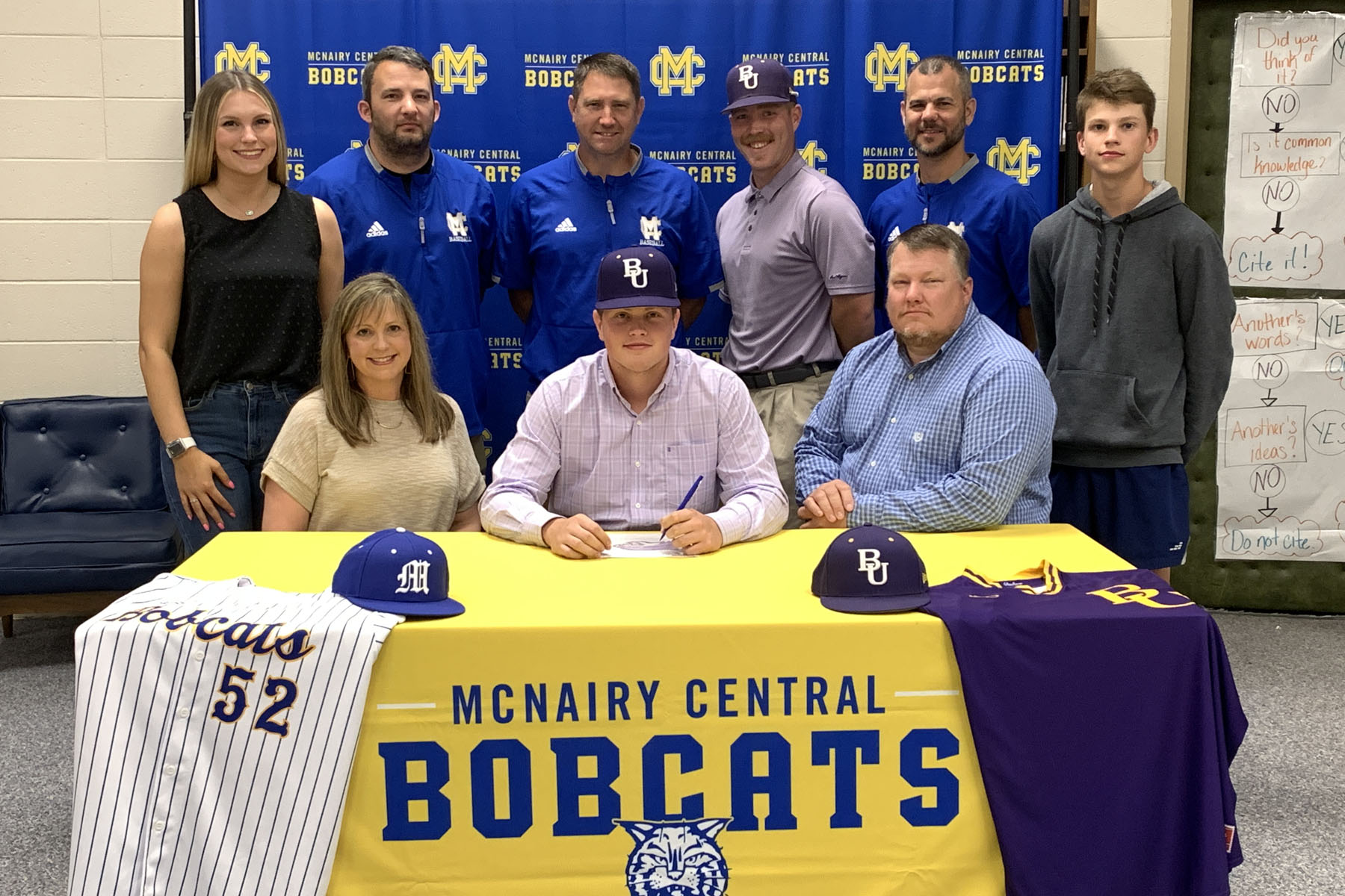 Will Overton has signed to play baseball at Bethel University this fall. Overton is the son of Lee and Elizabeth Overton. Pictured also are his siblings Maggie and Jackson, the MCHS baseball coaches Brian Franks, Stacy Riley, and Wes Moore, and Bethel University Recruiting Coordinator Lee Whitaker. Head Coach at Bethel is Rusty Thompson, and Pitching Coach is Nick Thompson. Overton's favorite baseball memory was playing in the World Series with the Predators, his travel team from Hornsby, in 2016. The team placed 2nd and earned some 'big old rings' at Orange Beach in his last of 3 years on that team. He also enjoyed being selected for "Team USA" in 2017, playing out of Jupiter, FL for team Elite. Overton has yet to decide on a major or career path, but will be on the pitching mound for Bethel while he decides on his future.