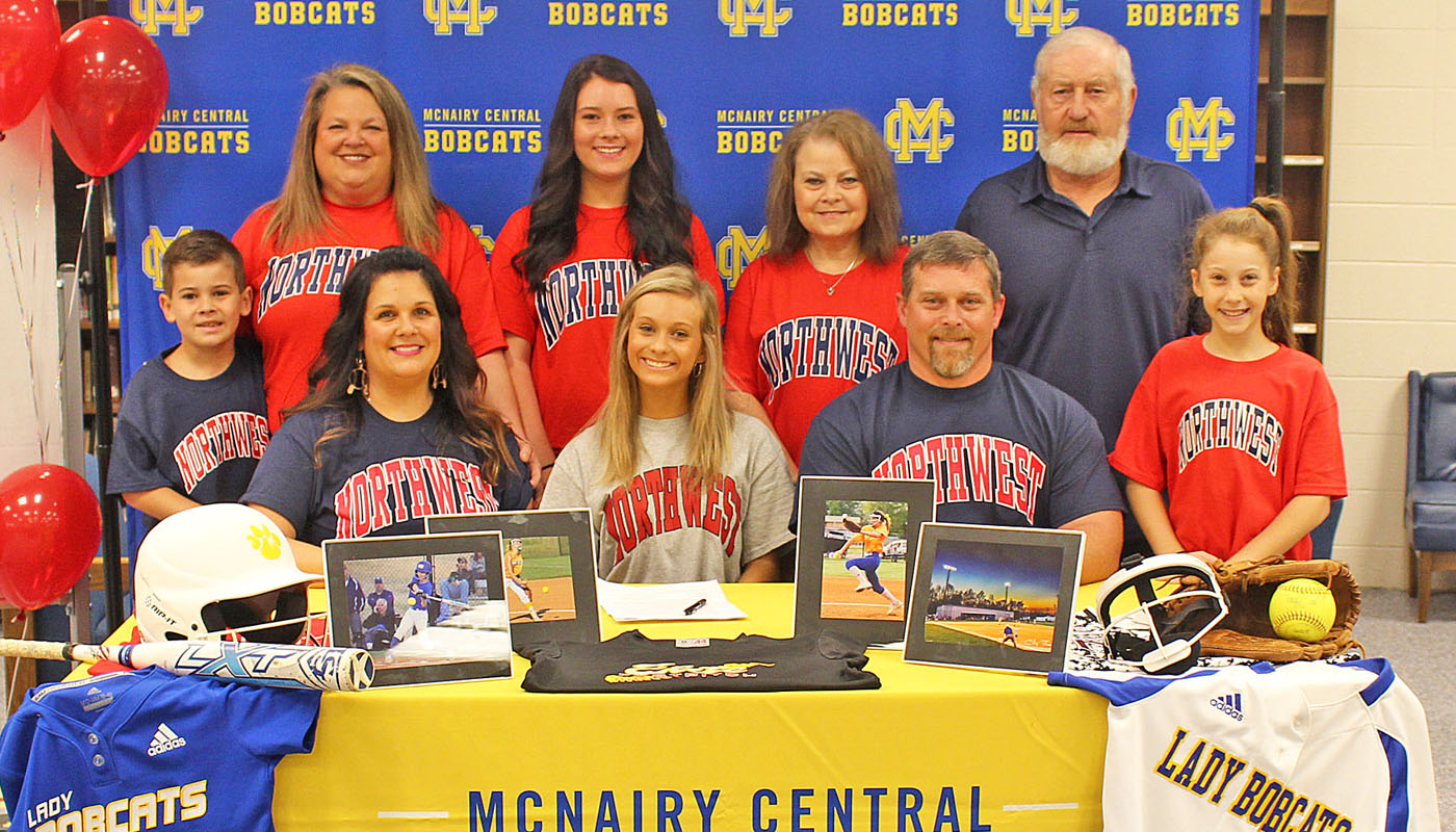 MCHS Senior Kylee Brown has signed a letter of intent to play softball next year at Northwest MS Community College in Senatobia, MS. Brown is a pitcher for the Lady Cats Softball team, and also plays on the Elite Travel Team. She is pictured with her parents, Dustin and Misty Brown, siblings Lynnlee, Baylee and Caden; "Mama B" Brenda and "Papaw" Larry Brown, "NeeNee" Lorie Tull, boyfriend Ty Case, Elite Coach Shae Woods and teammate Shelby Woods, and her softball and basketball teammates, seniors, and friends. Kylee's favorite softball memory is beating Southside her sophomore year. She plans to become a high school teacher.