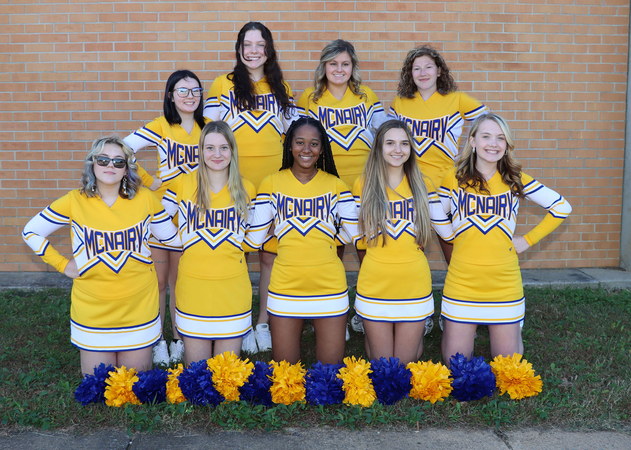 2021-22 Basketball Cheerleaders: Seniors (back l to r) Skye Smith, Trinity Byrd, Katie Welch, Lyndsey McCalvin