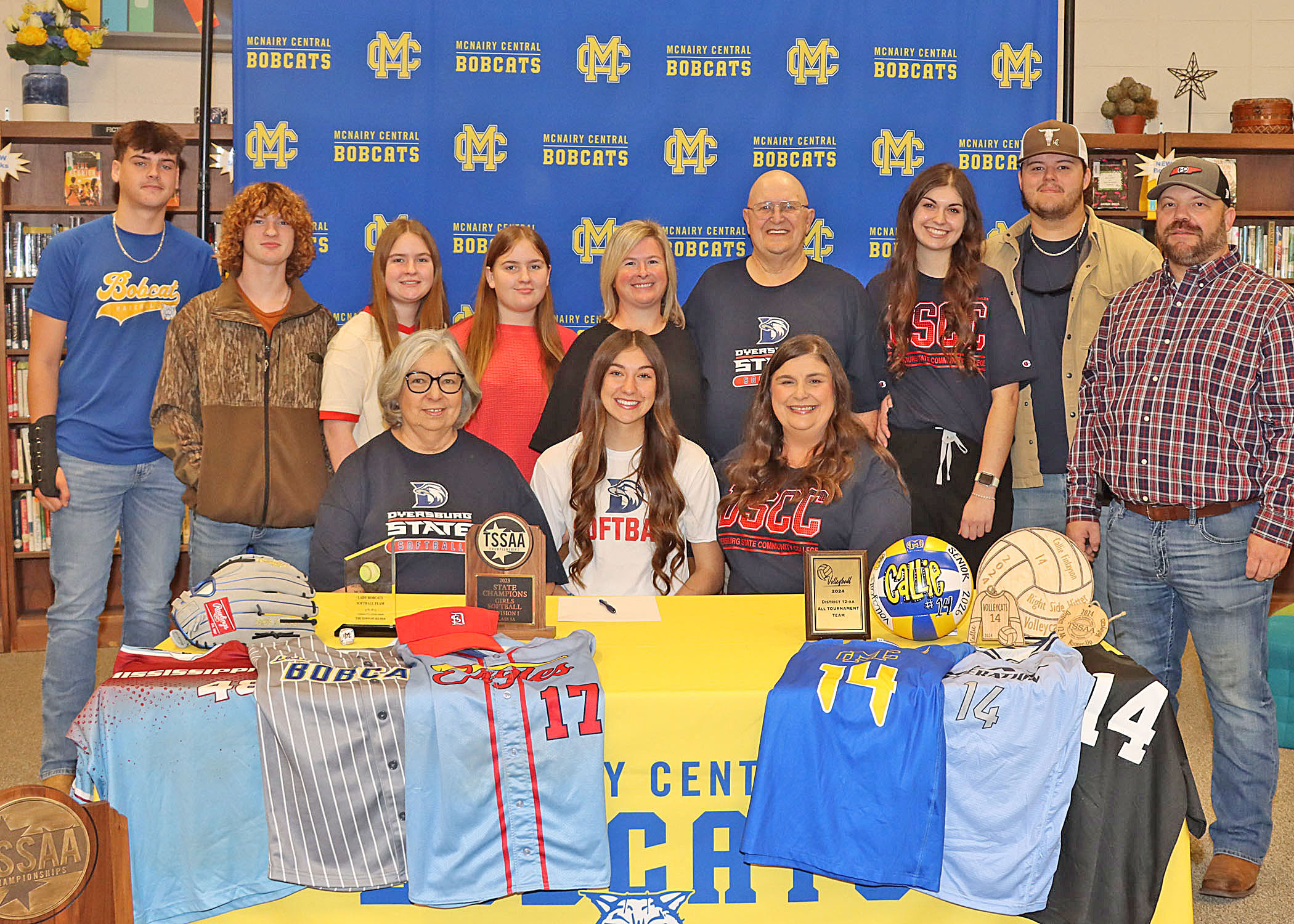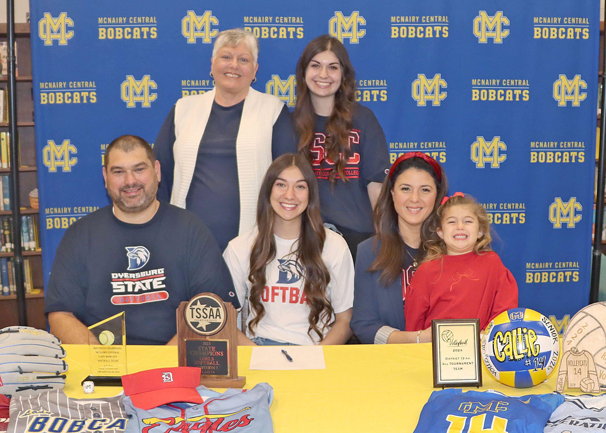 Callie is the daughter of Jenny Finlayson and John Finlayson, and the sister of Addison Finlayson, Emma Finlayson and Johnny Roy (Trey) Finlayson III. She is also pictured with Stepmom Valerie Finlayson, Mimi Kathy Finlayson, Nana Patricia and Pappy Jerry Matlock, and a host of family and friends. Also pictured are MCHS Principal Jason Newman and Athletic Director Brian Franks, and MCHS Coaches Mellanie Surratt, Meg Day, Steve King, Ross Shelton and Jimmy Ray.
