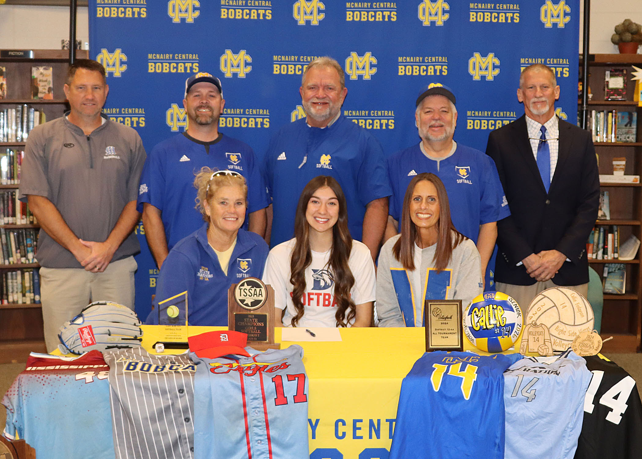 Senior Callie Finlayson has signed a letter of intent to play both softball and volleyball for the Dyersburg State Lady Eagles. Finlayson is the centerfielder for the Lady Cats Softball team, and was an integral part of their state championship her freshman year and state tourney appearance this past year. She is also a Right Side Hitter for volleyball, and was named to the All District team this year. She had previously been named as honorable mention for the Daily Corinthian's All-Area Team in 2023, to their Second Team in 2024, and to the All District Tournament Team in 2024, all in volleyball.